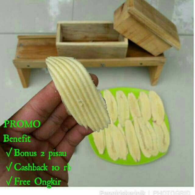 ALAT PEMOTONG PISANG digunakan untuk memotong pisang tipis-tipis cocok untuk usaha keripik pisang atau makanan sale pisang. Pemotong keripik PISANG tipis dari kayu jati pisau dari pisau belati stainlees steel, (cacahan daging ) untuk anda yang ingin / menjalani usaha keripik. Tapi ini berbanding lurus dengan kecepatan pemotongan yang.