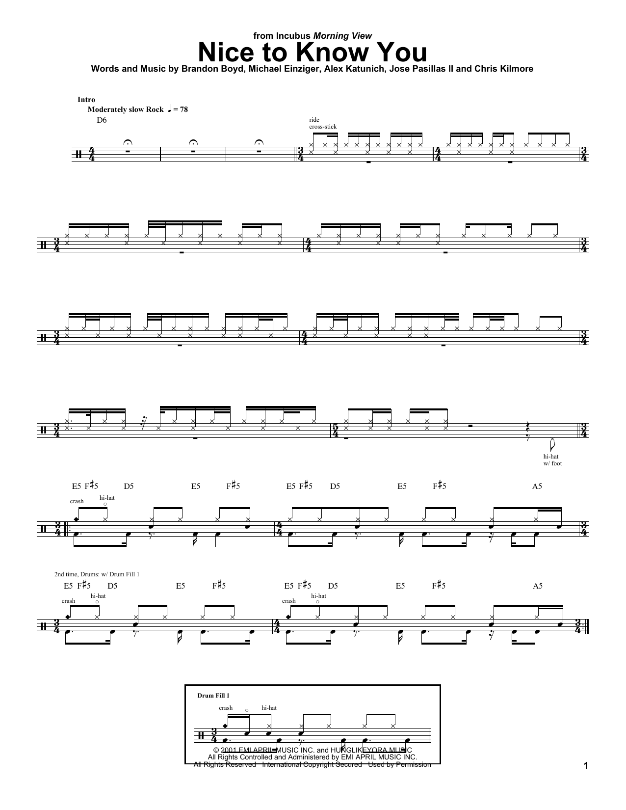 Nice To Know You Sheet Music | Incubus | Drums Transcription