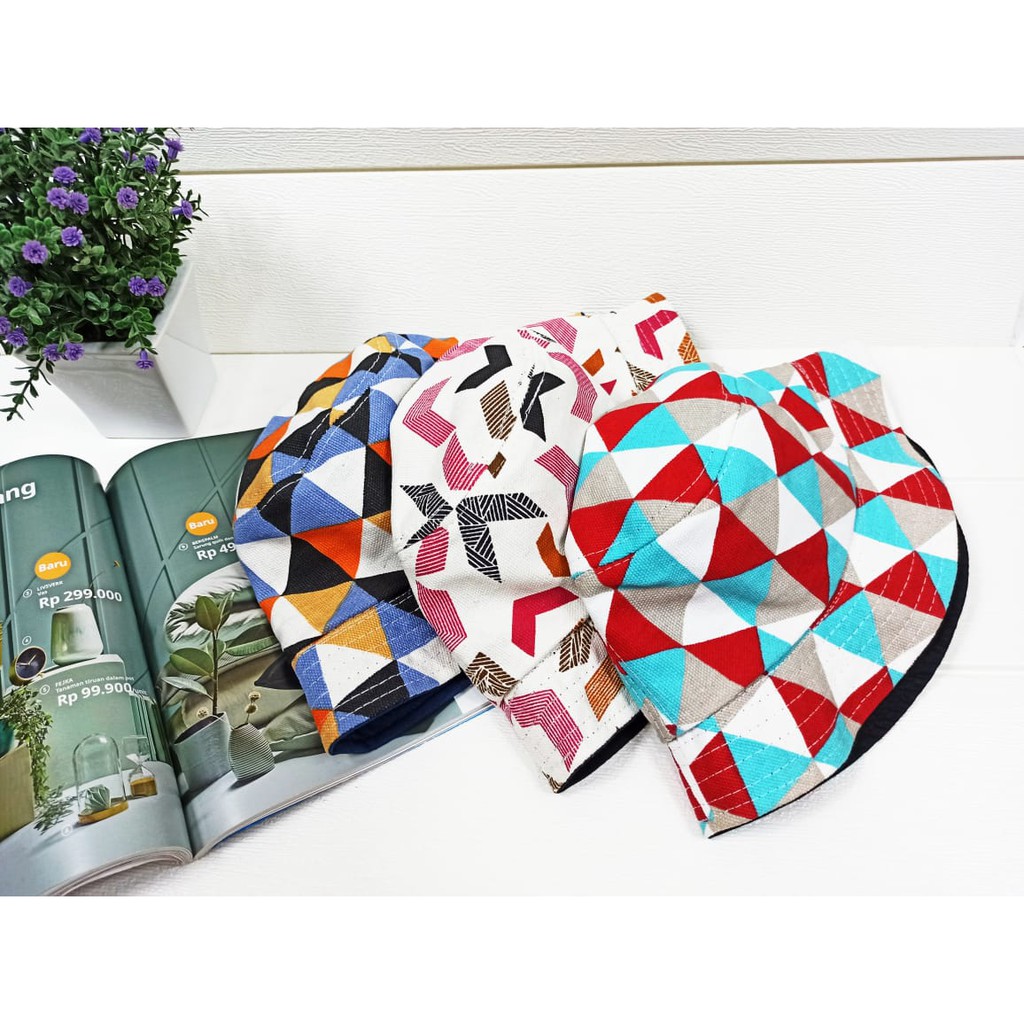 topi bucket hat motif batik catur segitiga panah bumerang ...