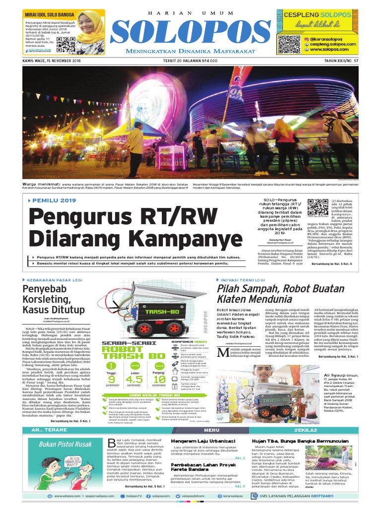 Koran Solopos. Solopos.com, BOYOLALI - Kebakaran melanda sebuah pabrik kayu laminating, UD Wrekso Rahayu, yang berlokasi di Dukuh Kalikiring, Desa Kragilan, Kecamatan Mojosongo, Kabupaten Boyolali. Untuk koran arsip lama silakan didownload di menu E-KORAN ARSIP LAMA.