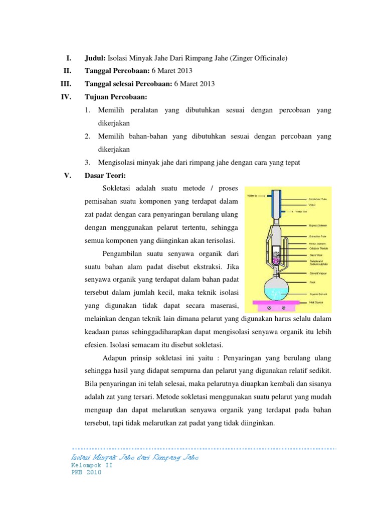A. Judul: Isolasi Minyak Jahe Dari Rimpang Jahe (Zingiber ...